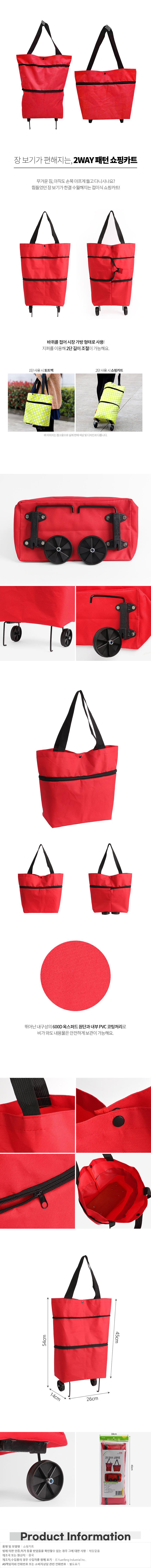 접이식 시장가방 겸용 쇼핑카트 레드 사우나가방 이미지/