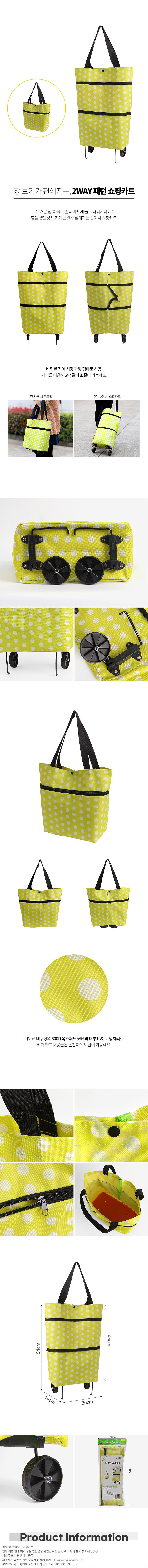 접이식 시장가방 겸용 쇼핑카트 패턴그린 숄더백