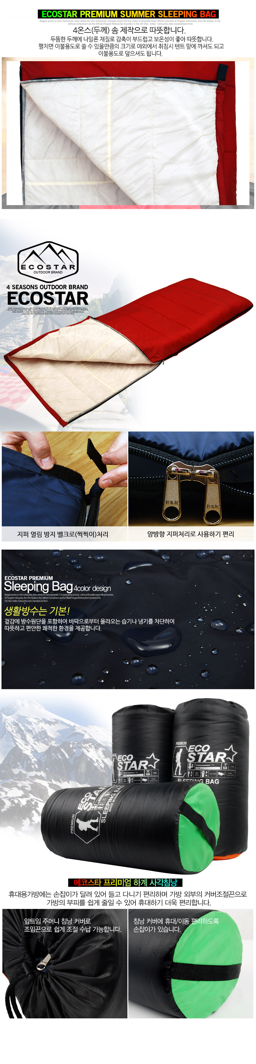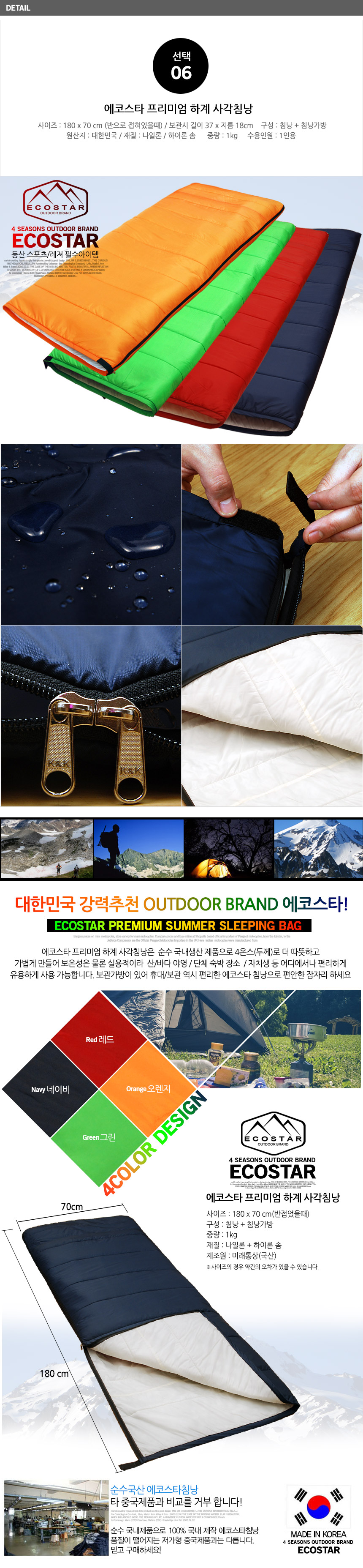 국산 4온스 프리미엄 에코스타 하계침낭 캠핑 침낭 이미지/