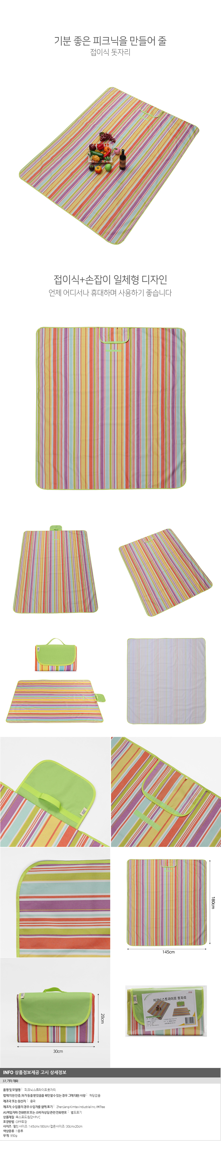 피크닉 스트라이프 매트 돗자리(145x180cm) (라이트그