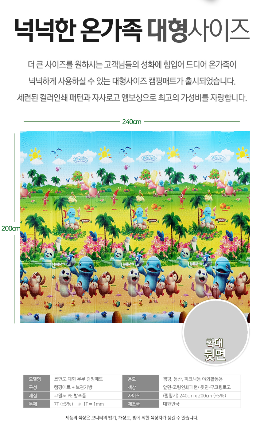 240x200 대형 코만도 무무 방수코팅 캠핑매트 돗자리 이미지/