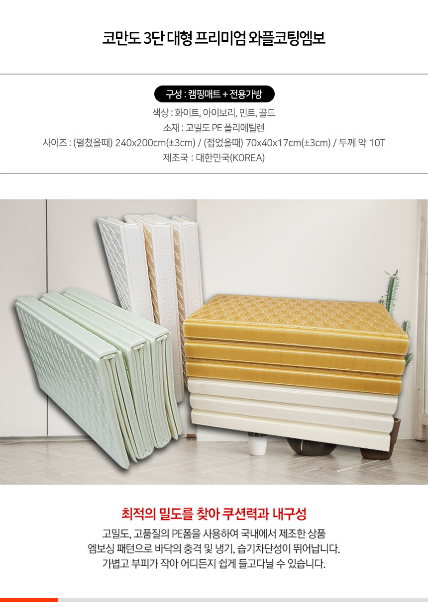 1. 품명 및 모델명 : 240x200 대형 코만도 와플 코팅방수