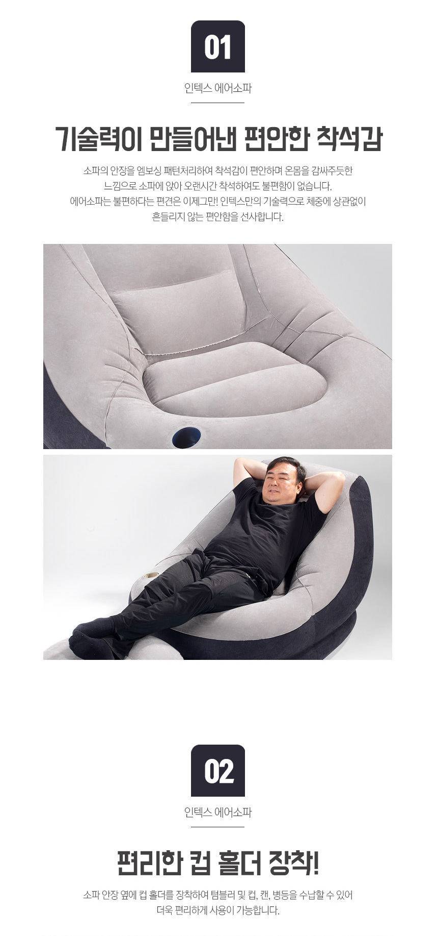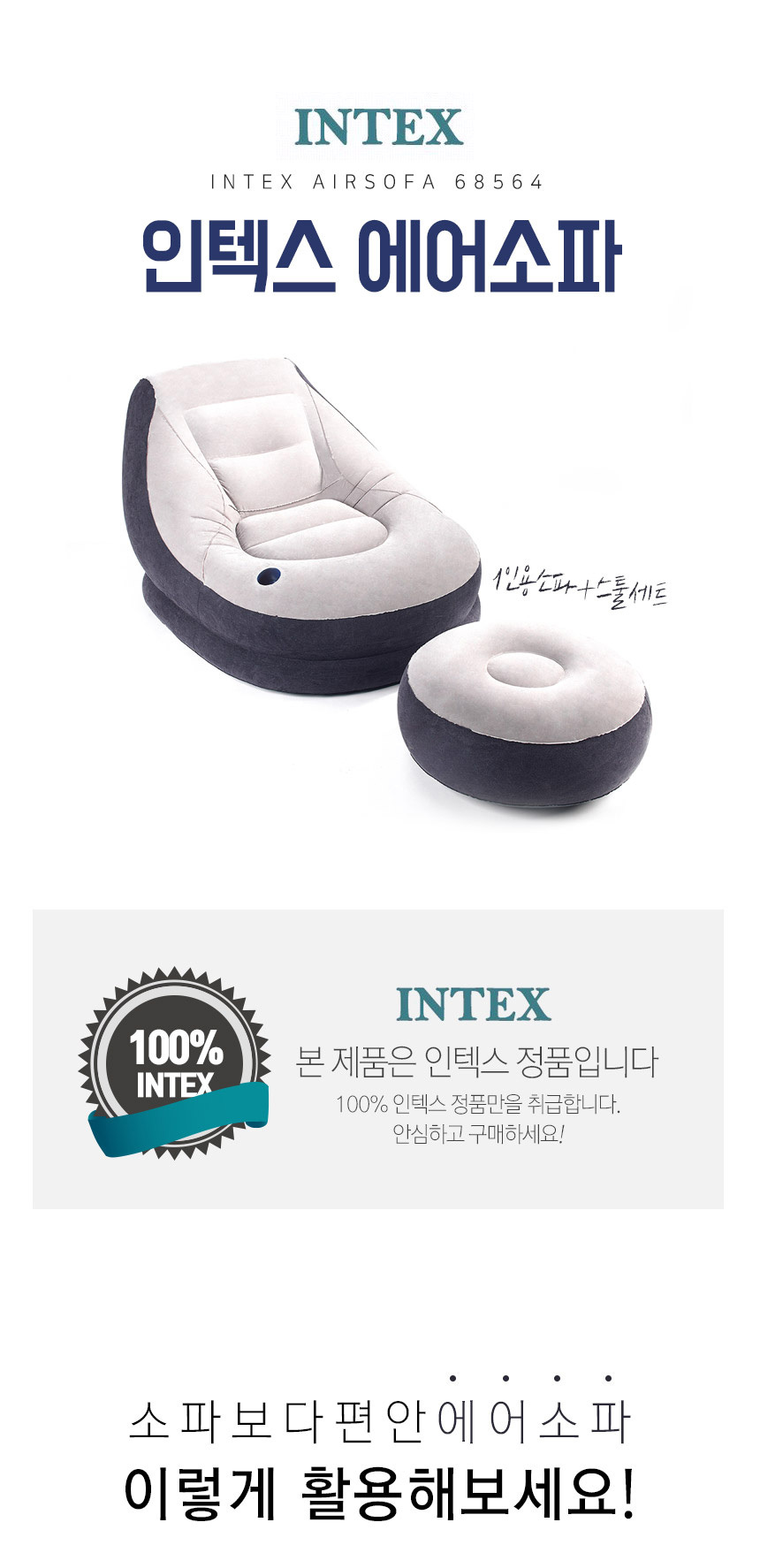 인텍스 에어소파+스툴세트 INTEX 에어매트 캠핑의자 이미지/