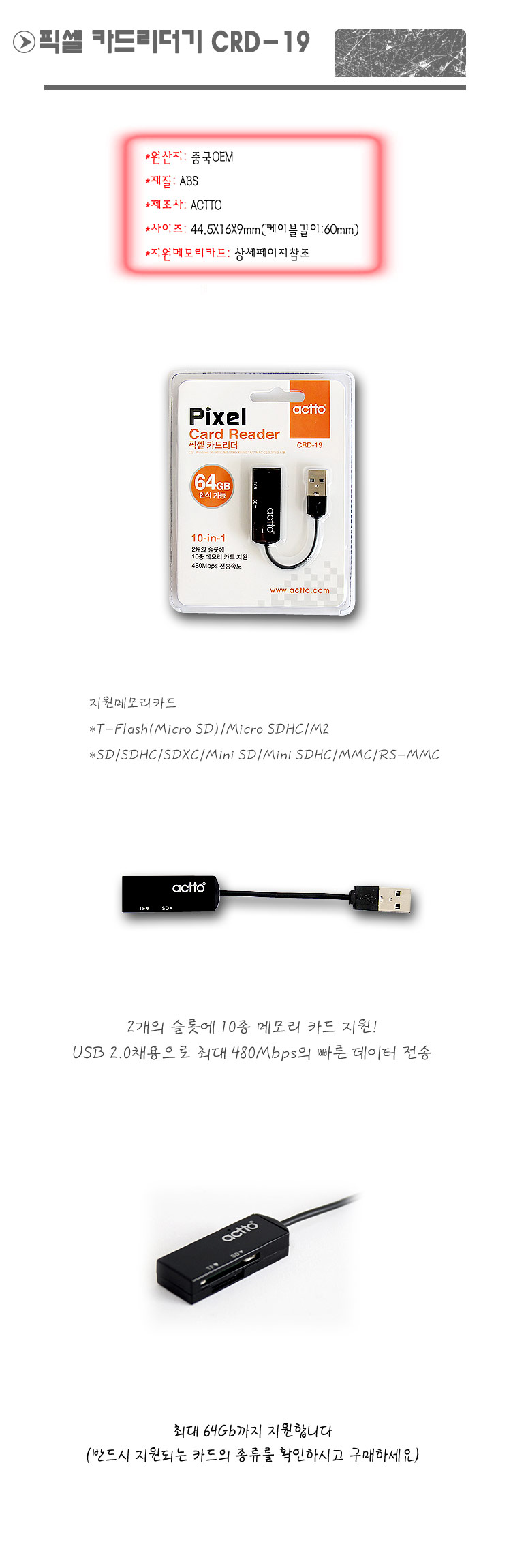 엑토 픽셀 카드 리더기 CRD19 PP 스마트 디지털용품