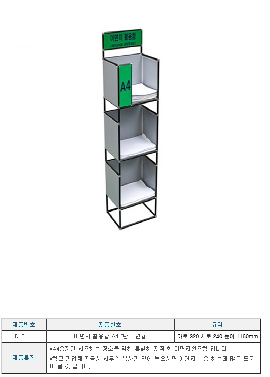 이면지 활용함 3단A형 학교 기업체 사무실 종이정리함 이미지/