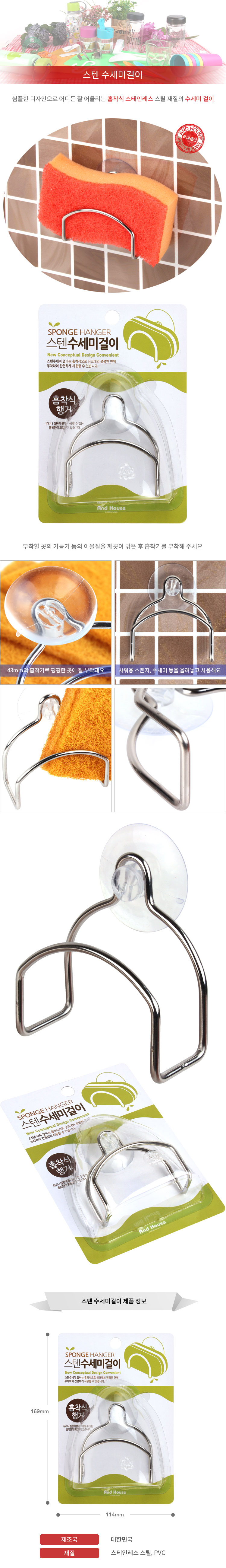 싱크대 흡착형 스텐 수세미 행거 걸이 이미지/