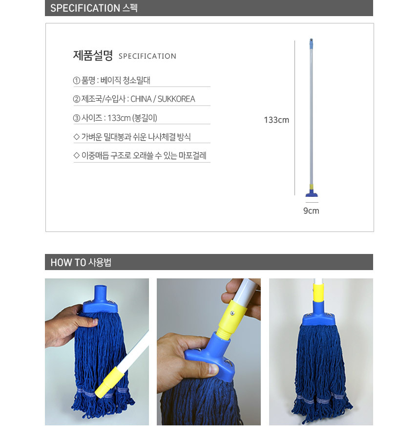 베이직밀대(M-4) 마대 대걸레 마포 바닥 밀대걸레