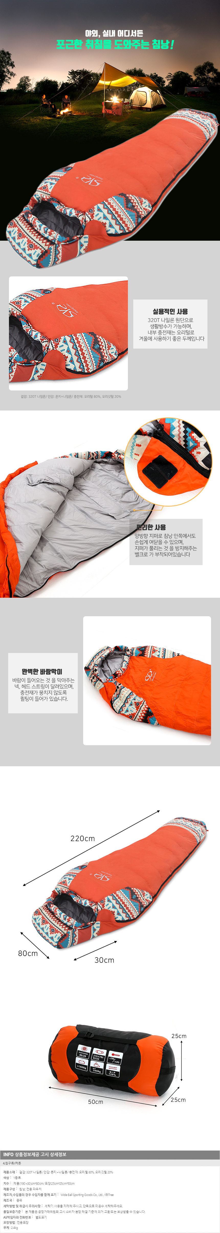 캠핑 방수 오리털 침낭 (오렌지) 이미지/