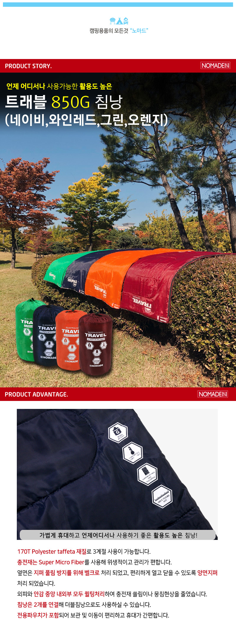 트레블 850G 침낭 이미지/