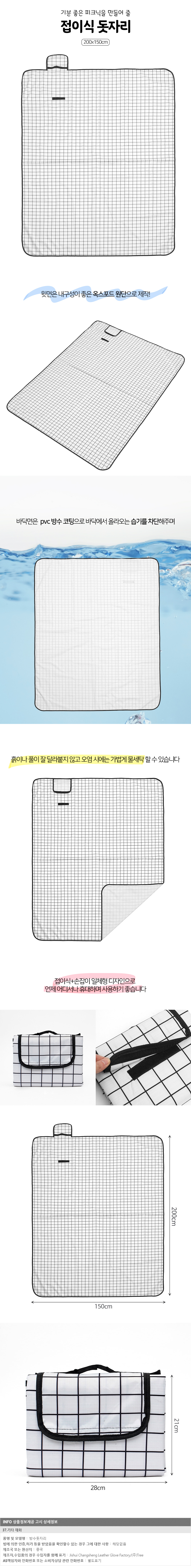 체크인모던 접이식 방수돗자리 200x150cm(화이트블랙) 이미지/