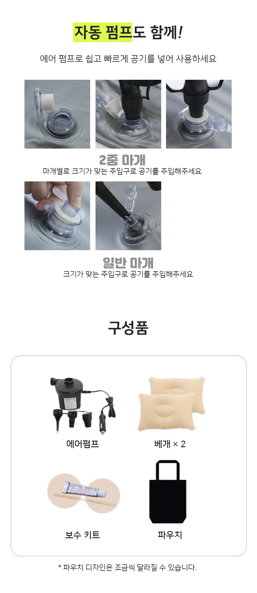 [지니몰] 차량용 에어매트/이너매트 차박 침낭 차량용 매트리스 경량 캠핑매트 야외 휴대용매