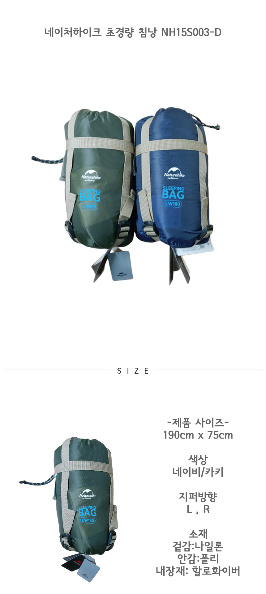 네이처하이크 삼계절 경량 침낭 NH15S003D 카키