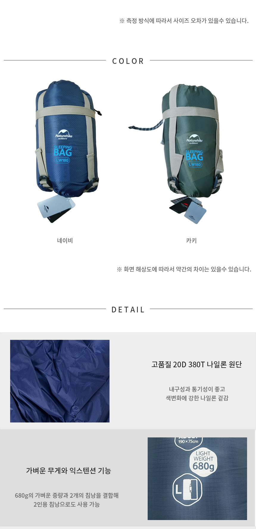 네이처하이크 삼계절 경량 침낭 NH15S003D 카키 이미지/