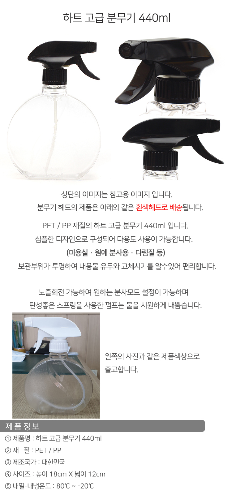하트 플라스틱 원형 고급 분무기 440ml 이미지/