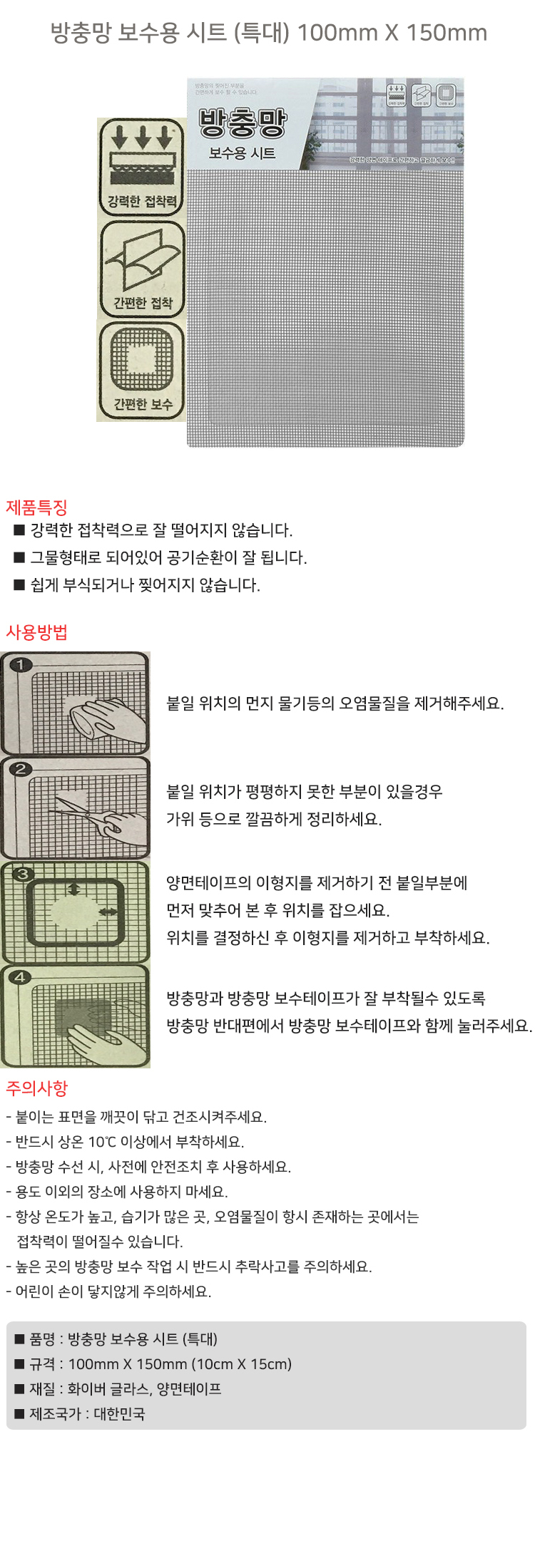 국산 방충망 보수시트 직사각 특대 1매 10cm X 15cm