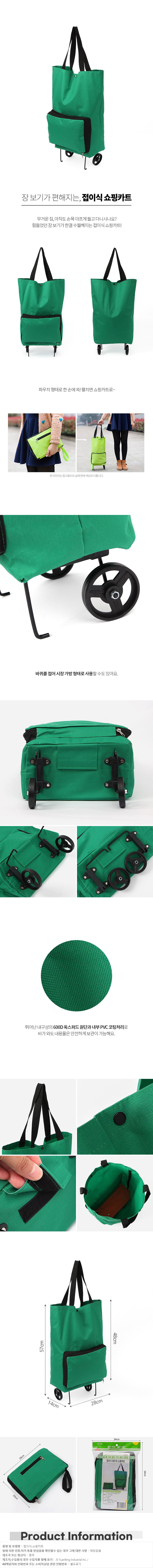 바퀴달린 접이식 쇼핑카트 그린 피크닉가방 토트백 이미지/