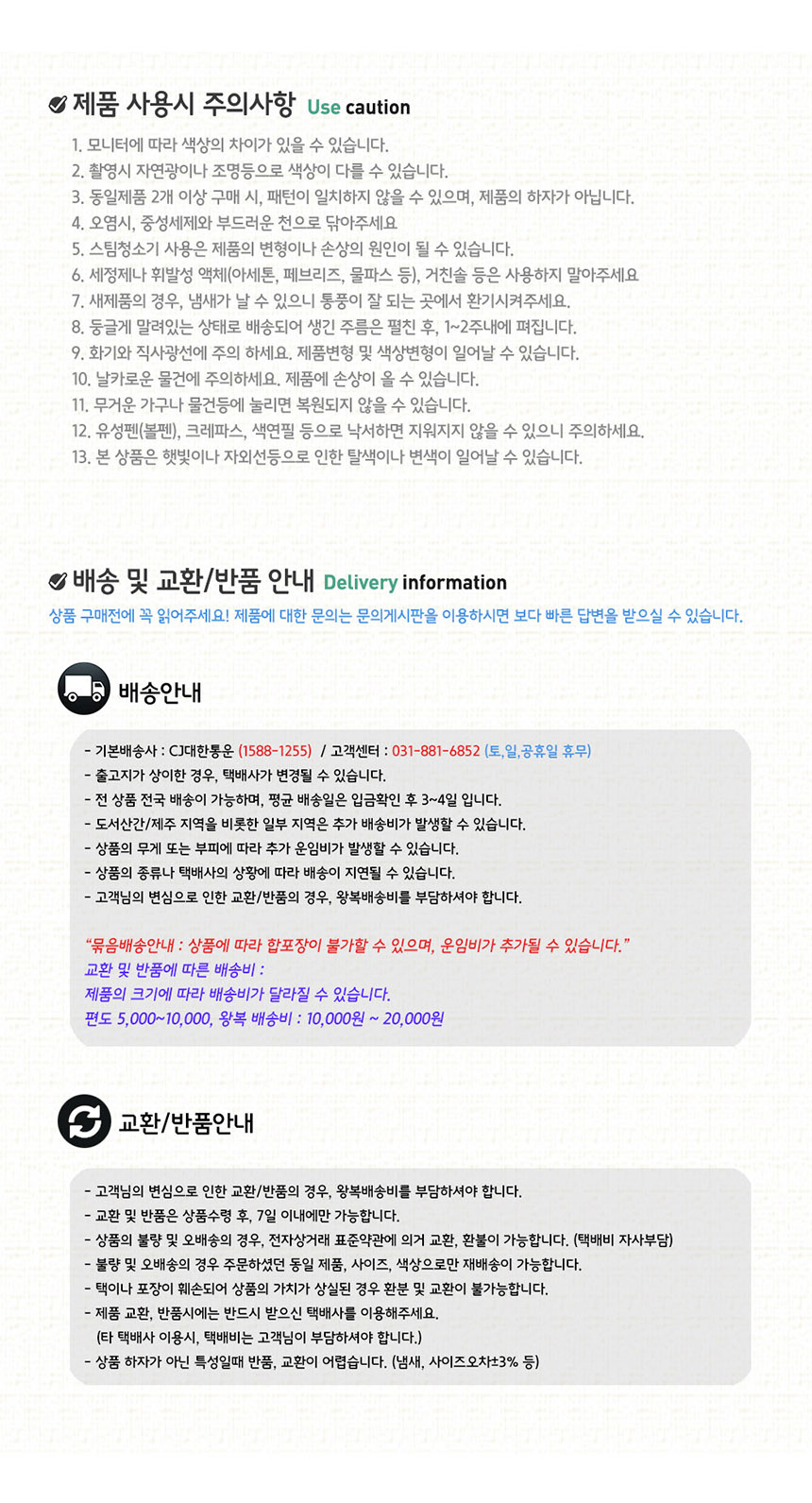 • - 단순 고객변심에 의한 반송 또는 교환의 경우(소요경비)