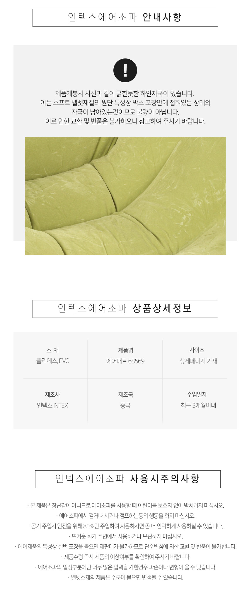 1. 품명 및 모델명 : 1인용 에어소파 에어매트