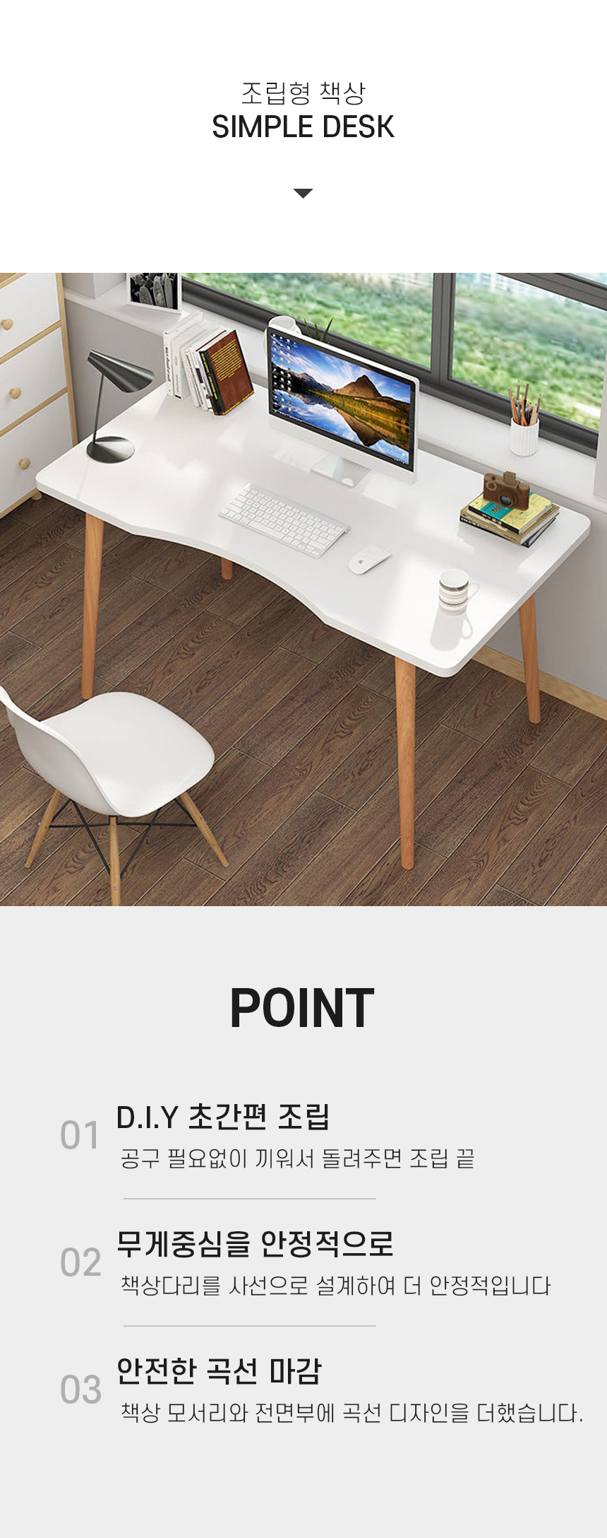 1인 심플책상 대형 100Cm / 조립식책상 DIY 학생책상 원룸책상 심플책상 보조책상 책