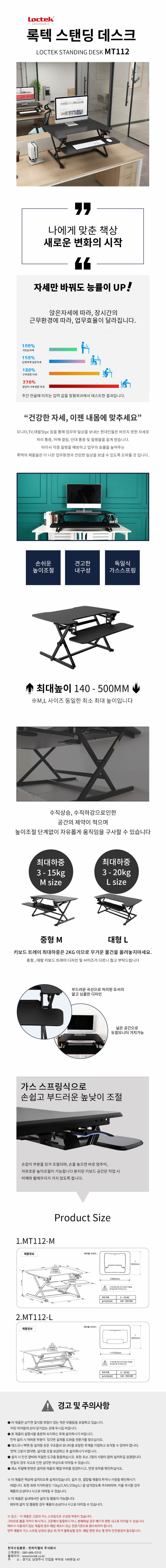 록텍)높이조절 워크스테이션(MT112 M/블랙/수동)