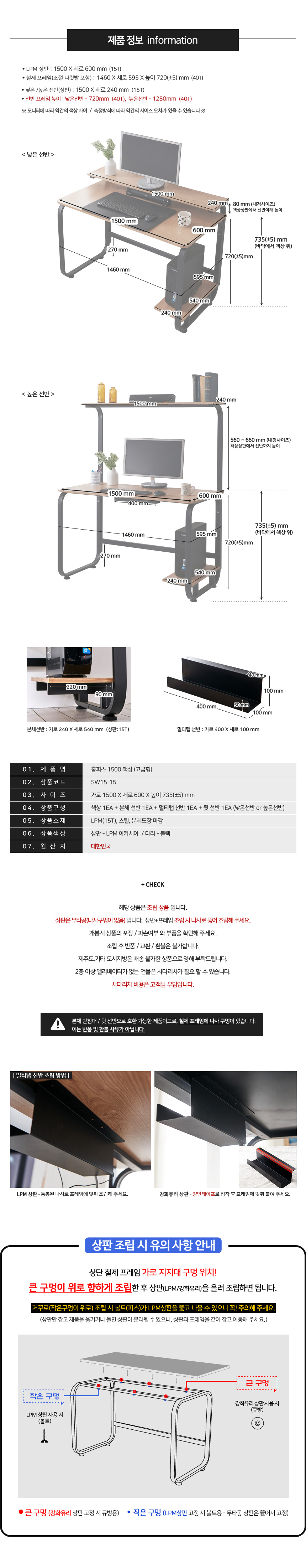 홈피스 1500 책상 고급형 이미지/