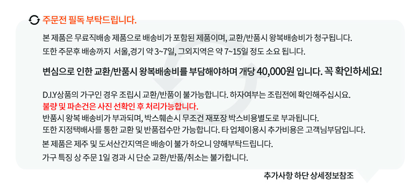 • 다른 제품과 같이 주문할 경우 따로 배송됨을 말씀드립니다.
