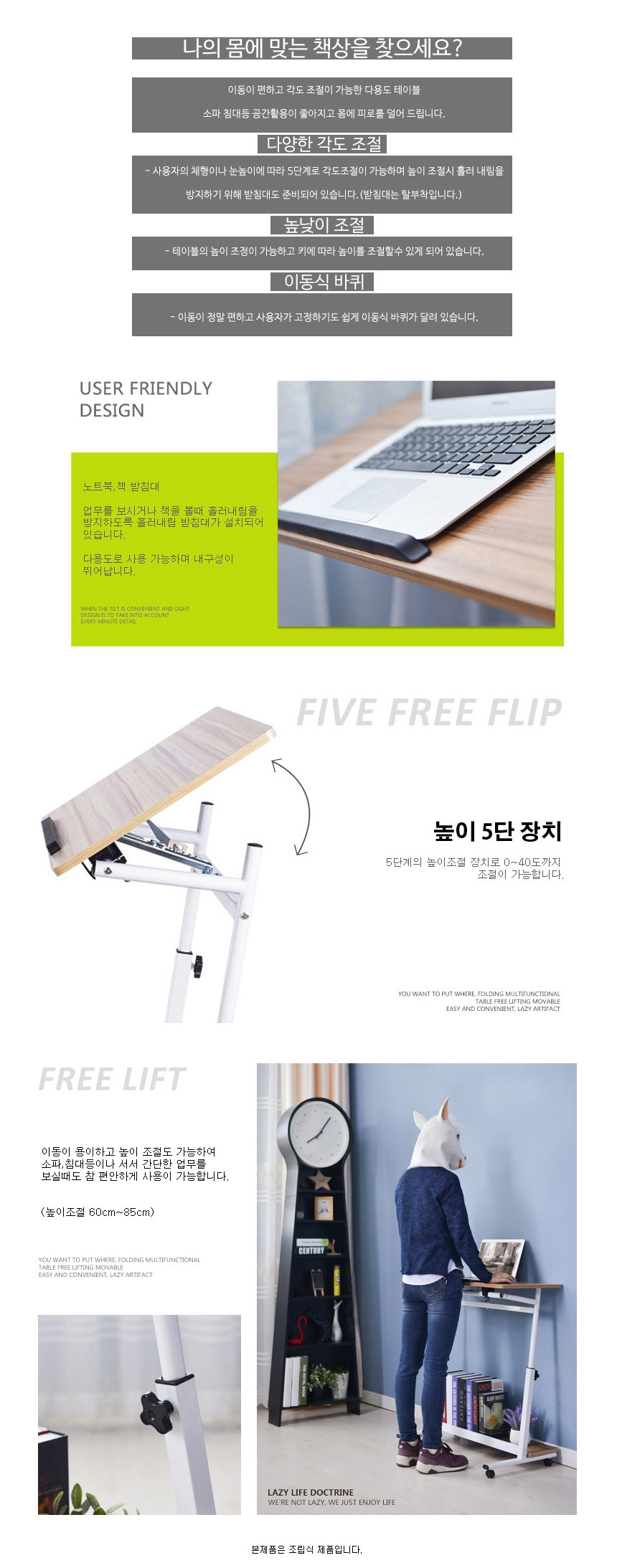 각도조절 사이드테이블/컴퓨터책상 노트북 1인용 보조