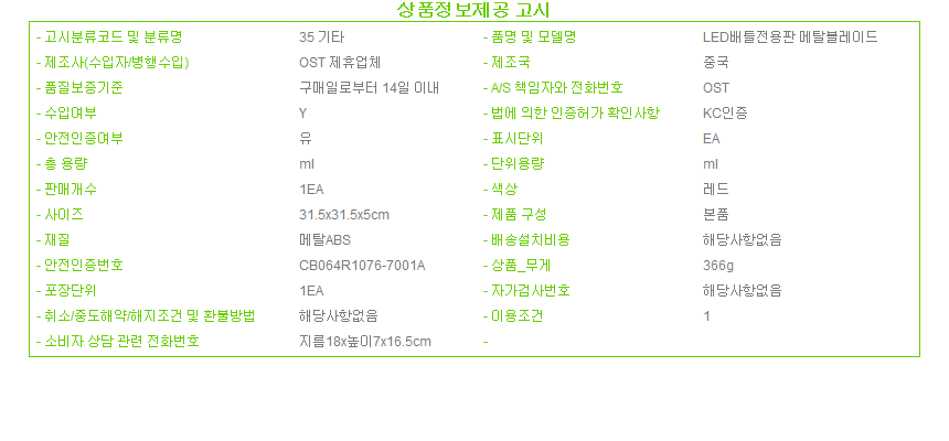 제조자 상품상세설명에 표기