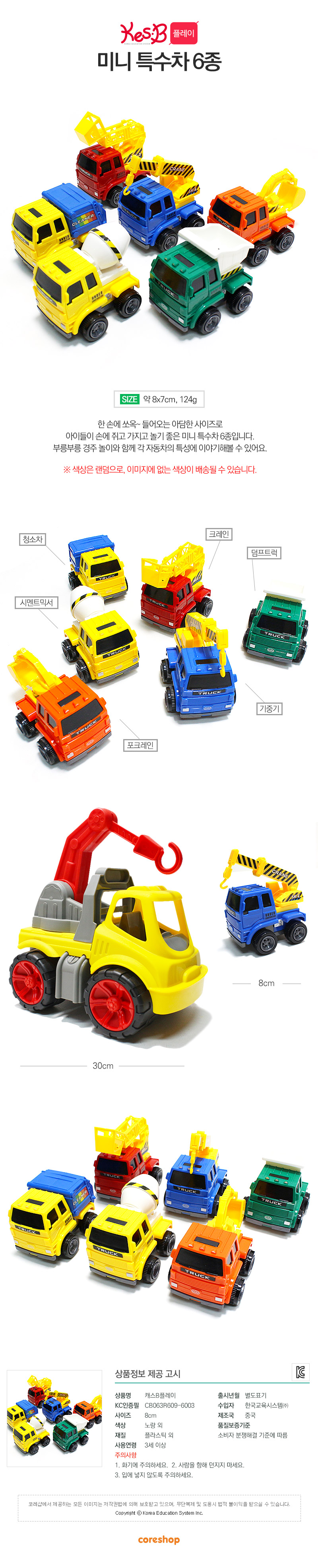미니특수차 6종 장난감자동차 교육용 장난감