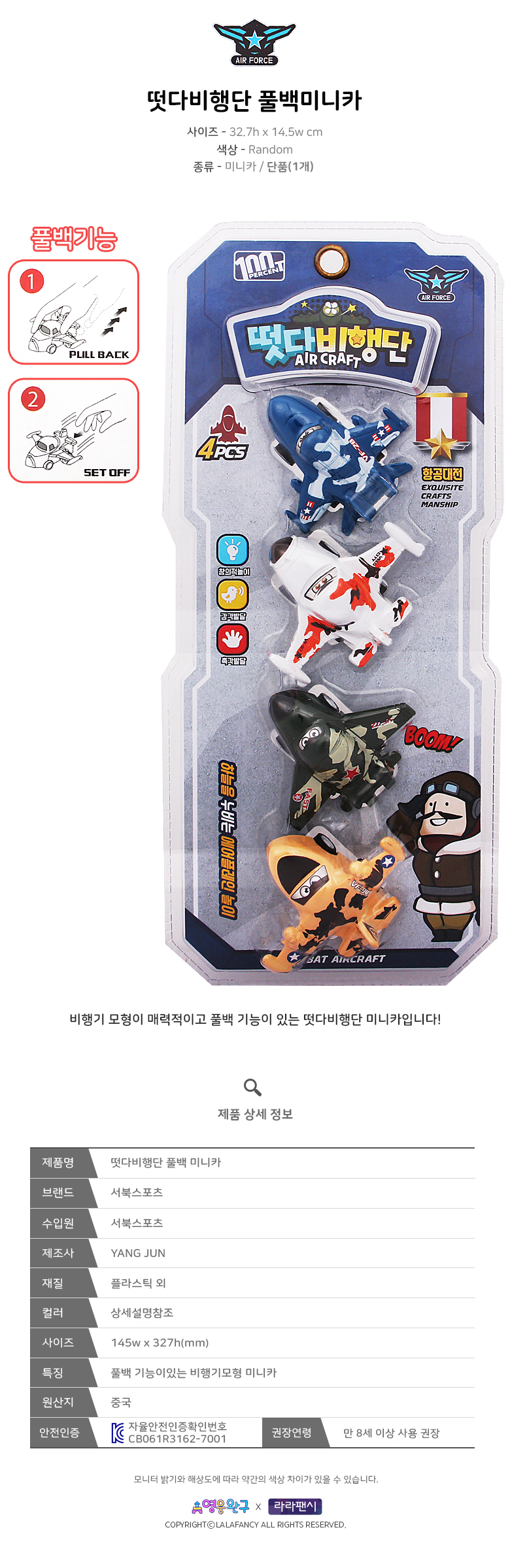 1. 품명 및 모델명 : 떳다비행단 풀백 비행기 미니 카 에어플레인 놀이