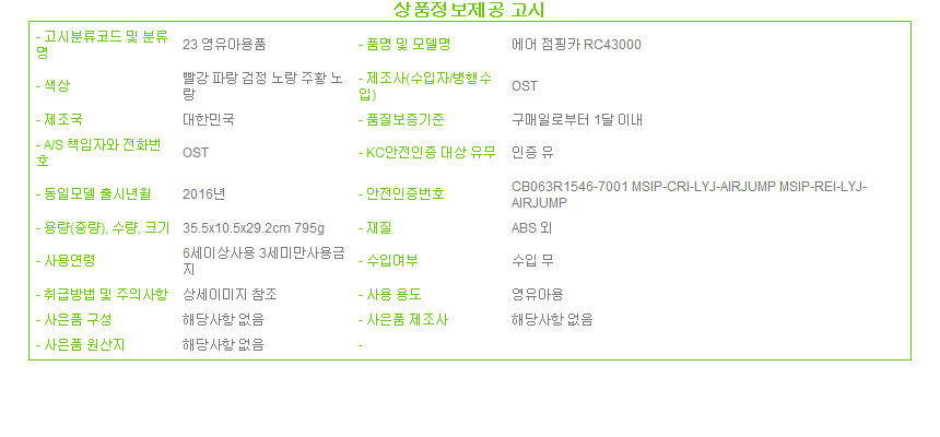 제조자 상품상세설명에 표기