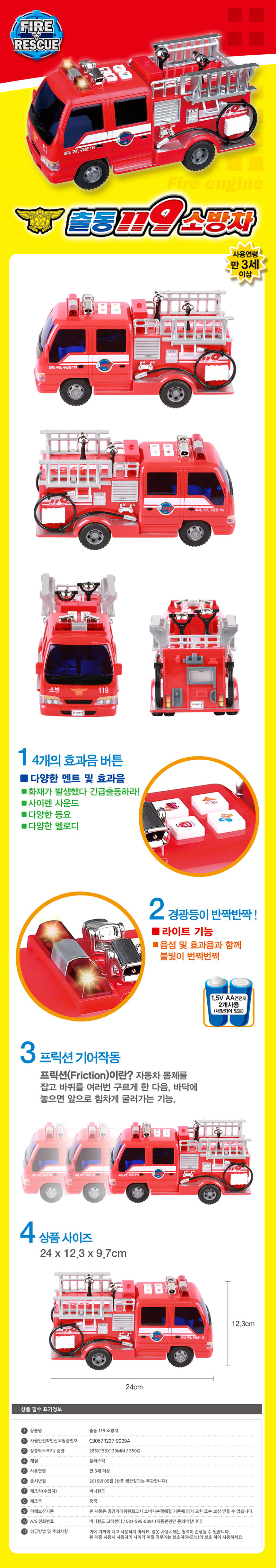 유아 소방차 장난감 효과음 멜로디 동요 프릭션