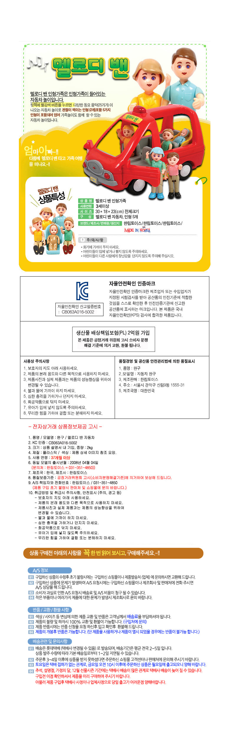 • 초기제품 이상의 경우 동일한 제품으로 1:1 교환원칙, 사용후 제품이상은 A/S를 원칙으로 합니다.