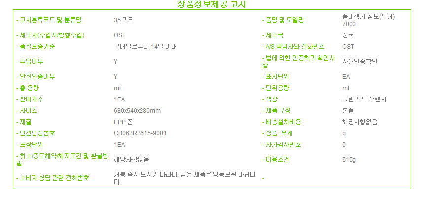 A/S책임자와 전화번호 또는 소비자 상담 관련 전화번호 상품상세설명에 표기