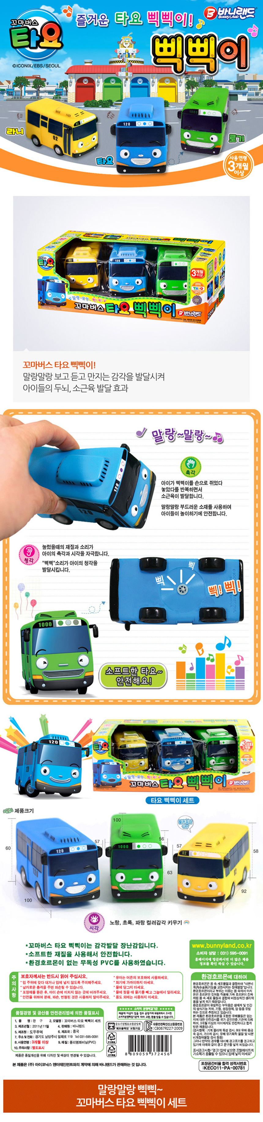 삑삑이 타요 친구 세트(타요+라니+로기) PVC 3M+