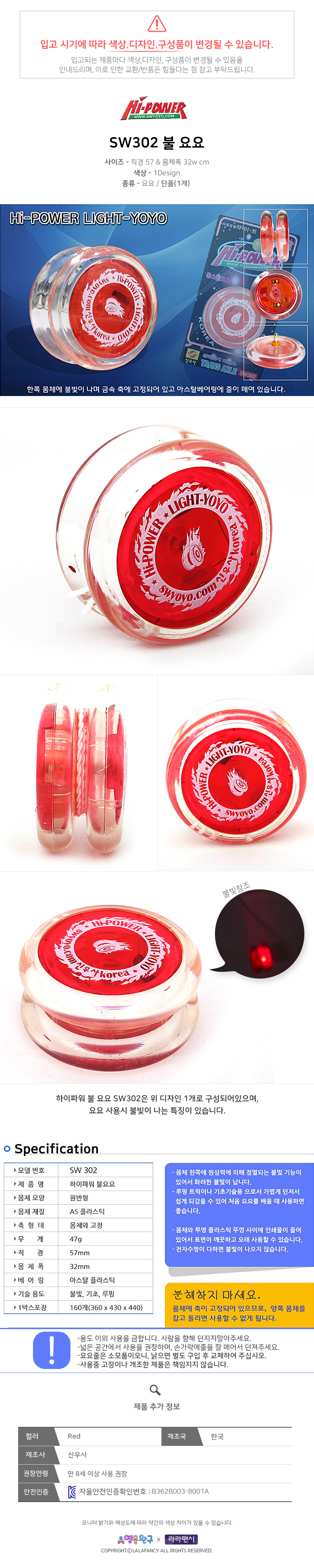 1. 품명 및 모델명 : 하이파워 불 요요 SW302
