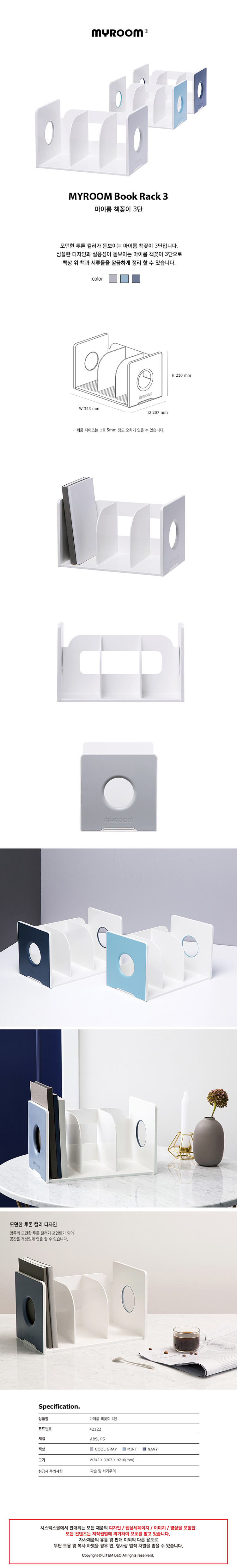 시스맥스)마이룸 책꽂이(3단/민트/42122) 이미지/
