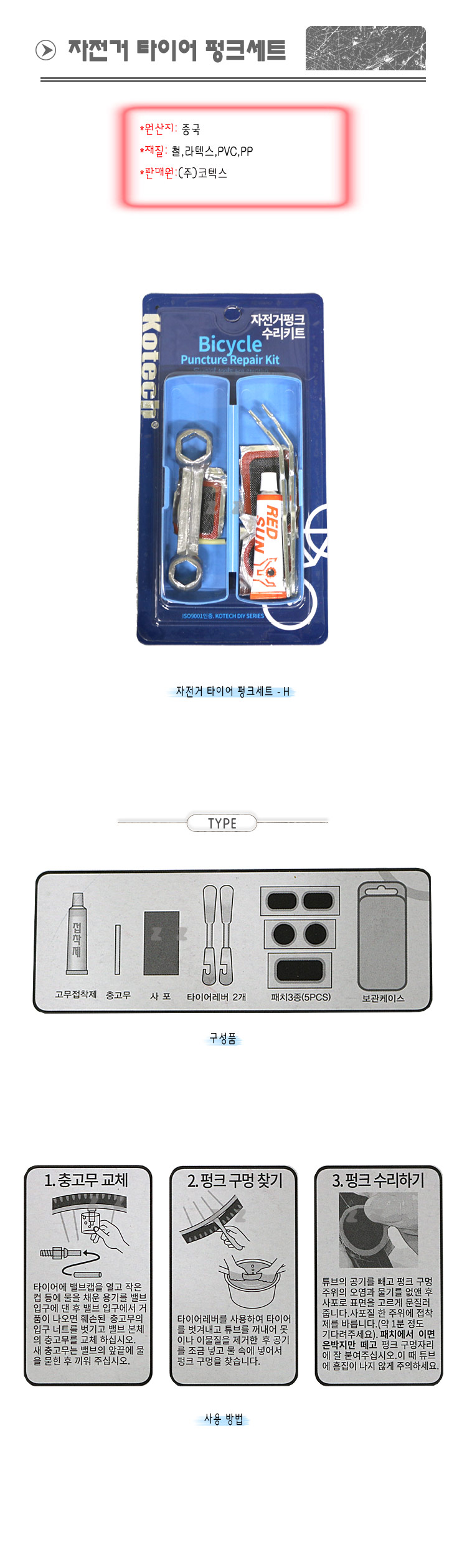 OSN 자전거 타이어 펑크세트 수리 타이어구멍