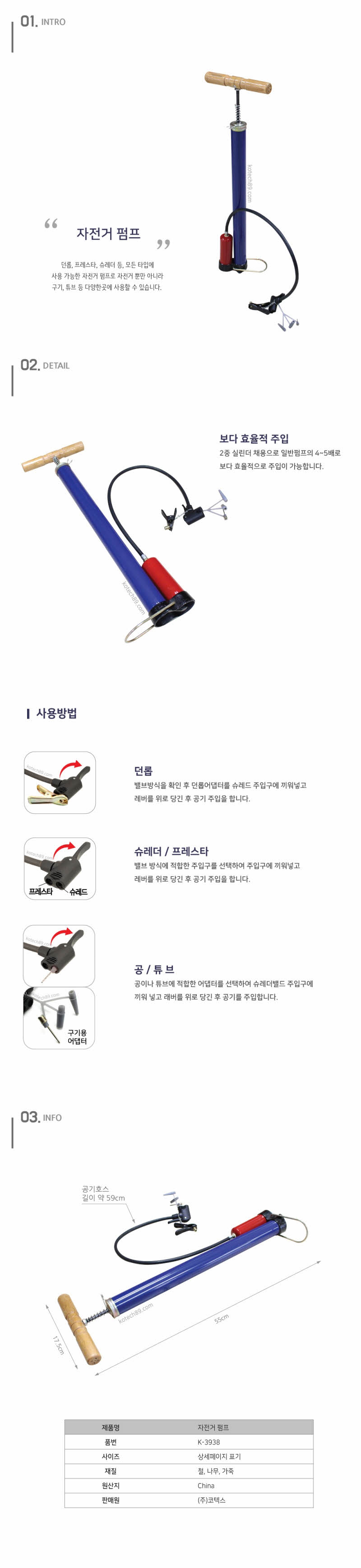 코텍 자전거펌프 K3938 이미지/