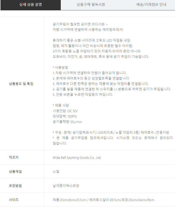 제조자 상품상세설명에 표기
