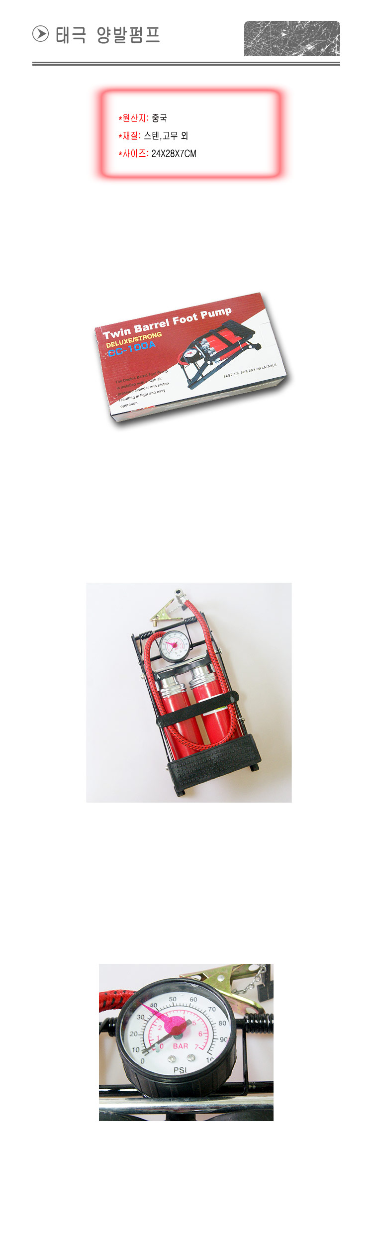 태극 양발펌프 튜브 에어매트 보트 바람넣기 펌프