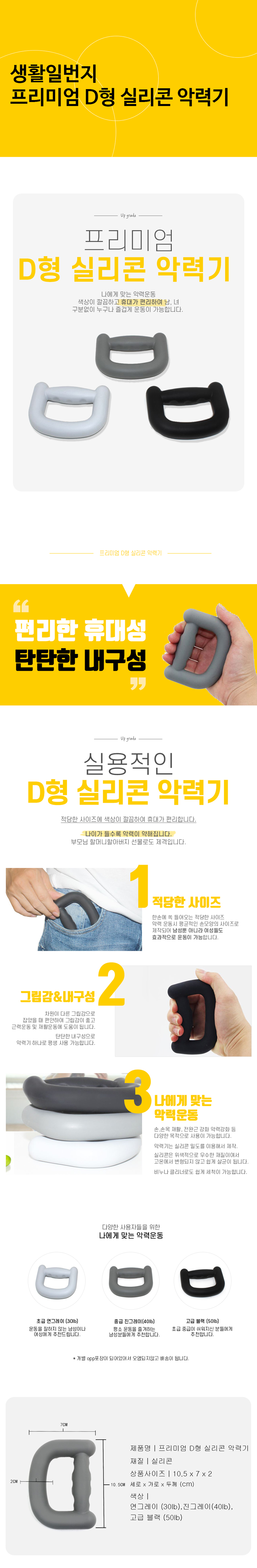 1. 품명 및 모델명 : 프리미엄 D형 실리콘 악력기