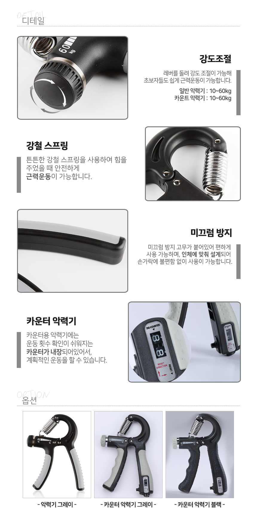 근력왕 미세조절 핸드그립 악력기 완력기 체력시험대비 10kg 60kg 카운트기능