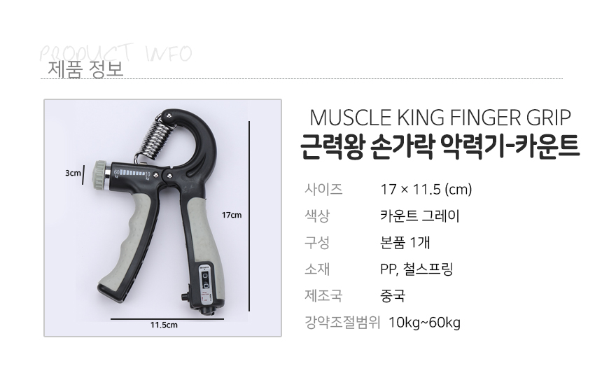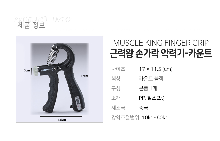 근력왕 미세조절 핸드그립 악력기 완력기 체력시험대비 10kg 60kg 카운트기능 이미지/