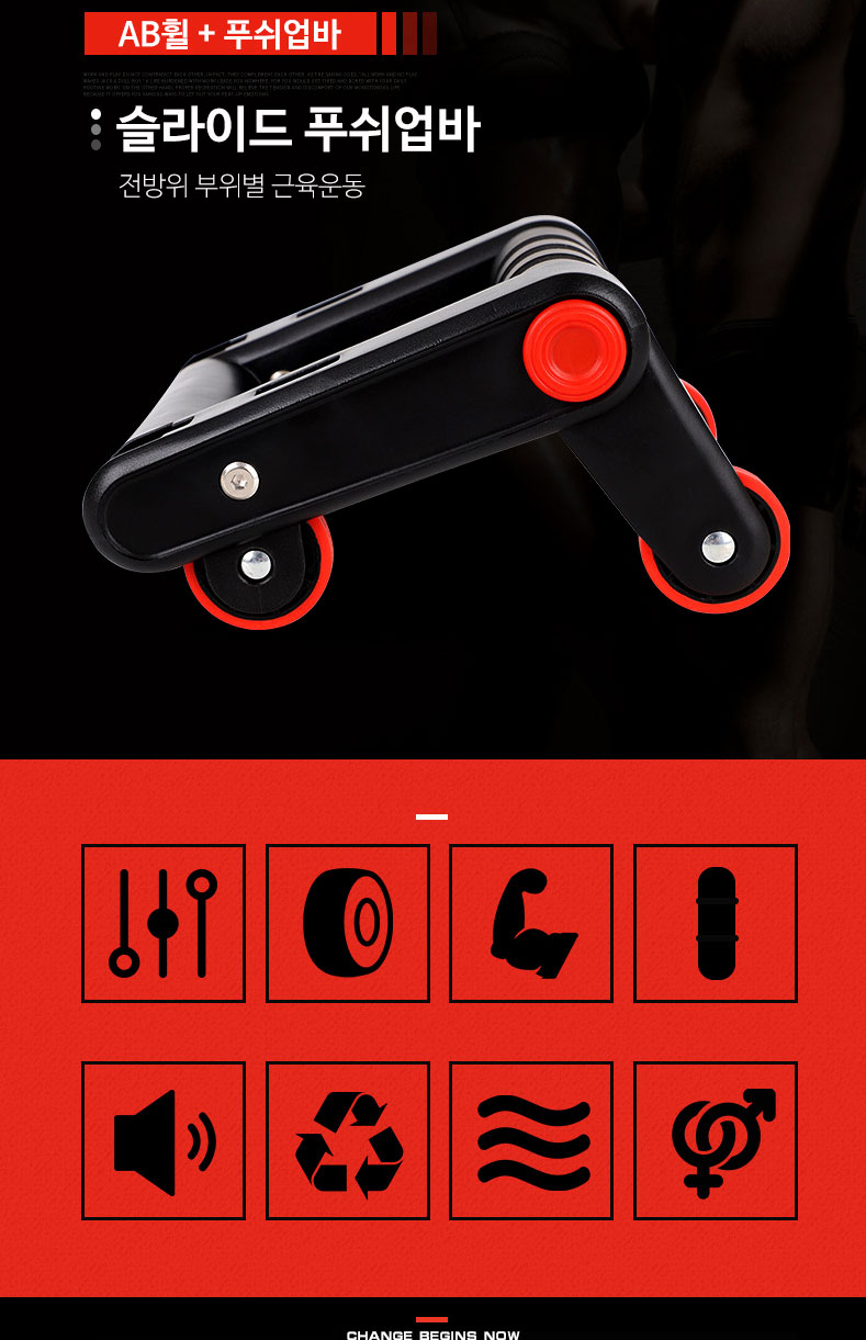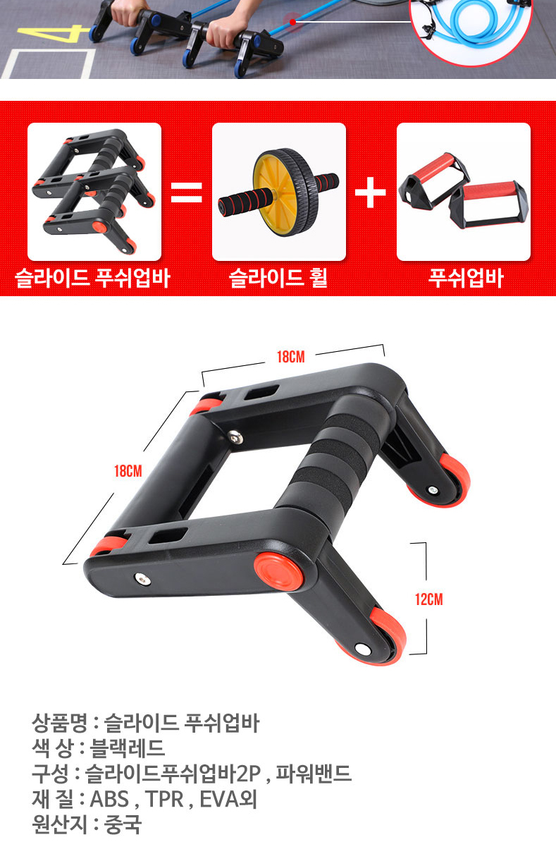 휠 푸쉬업바 보호패드 세트/ 복근 전신운동/ 셀프운동 이미지/