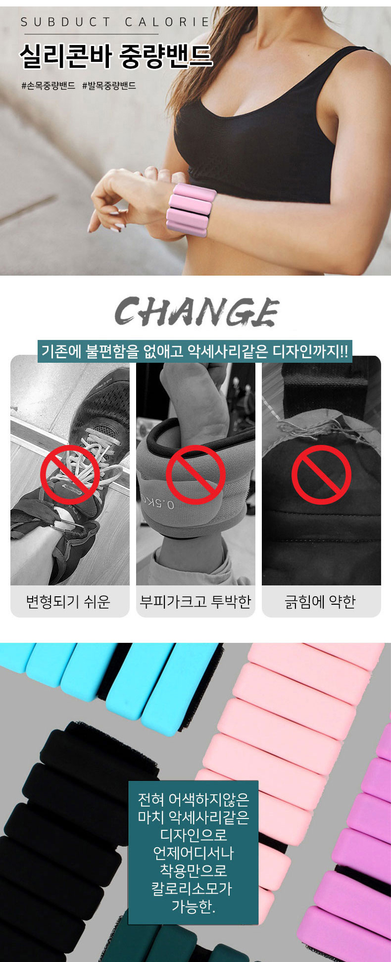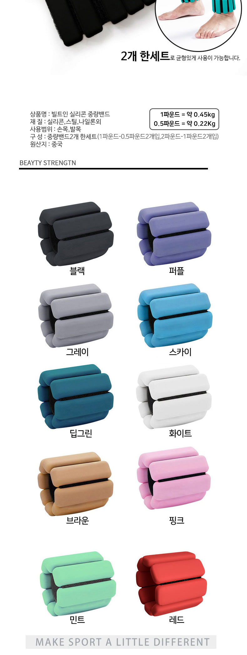 [GNJ]실리콘 중량 밴드 방수 실리콘 재질 발목 손목 수영 근력 운동(1 2파운드 2종) 이미지/