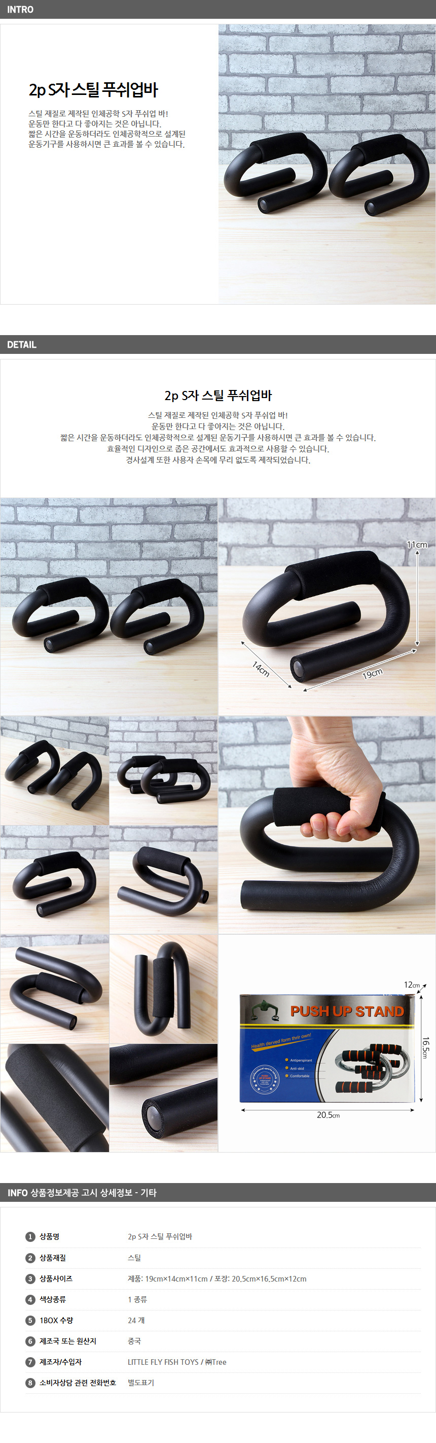 스틸 재질 2p S자형 푸쉬업 바 이미지/