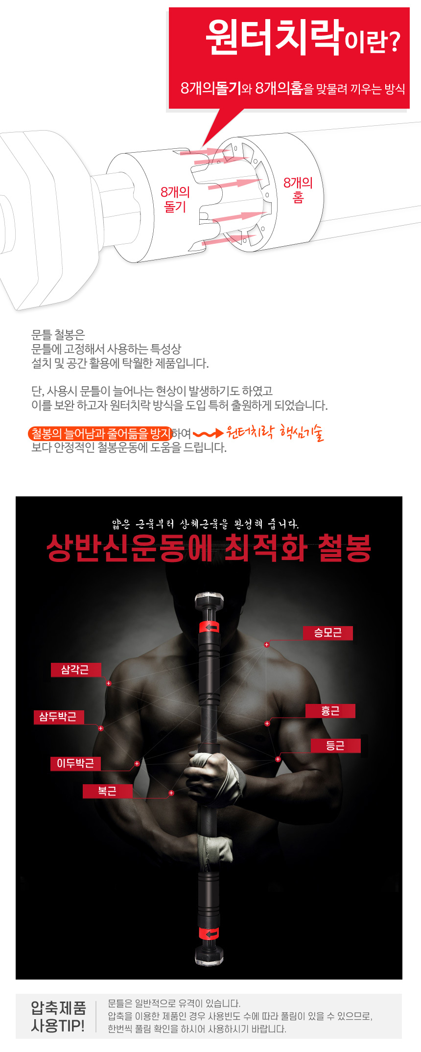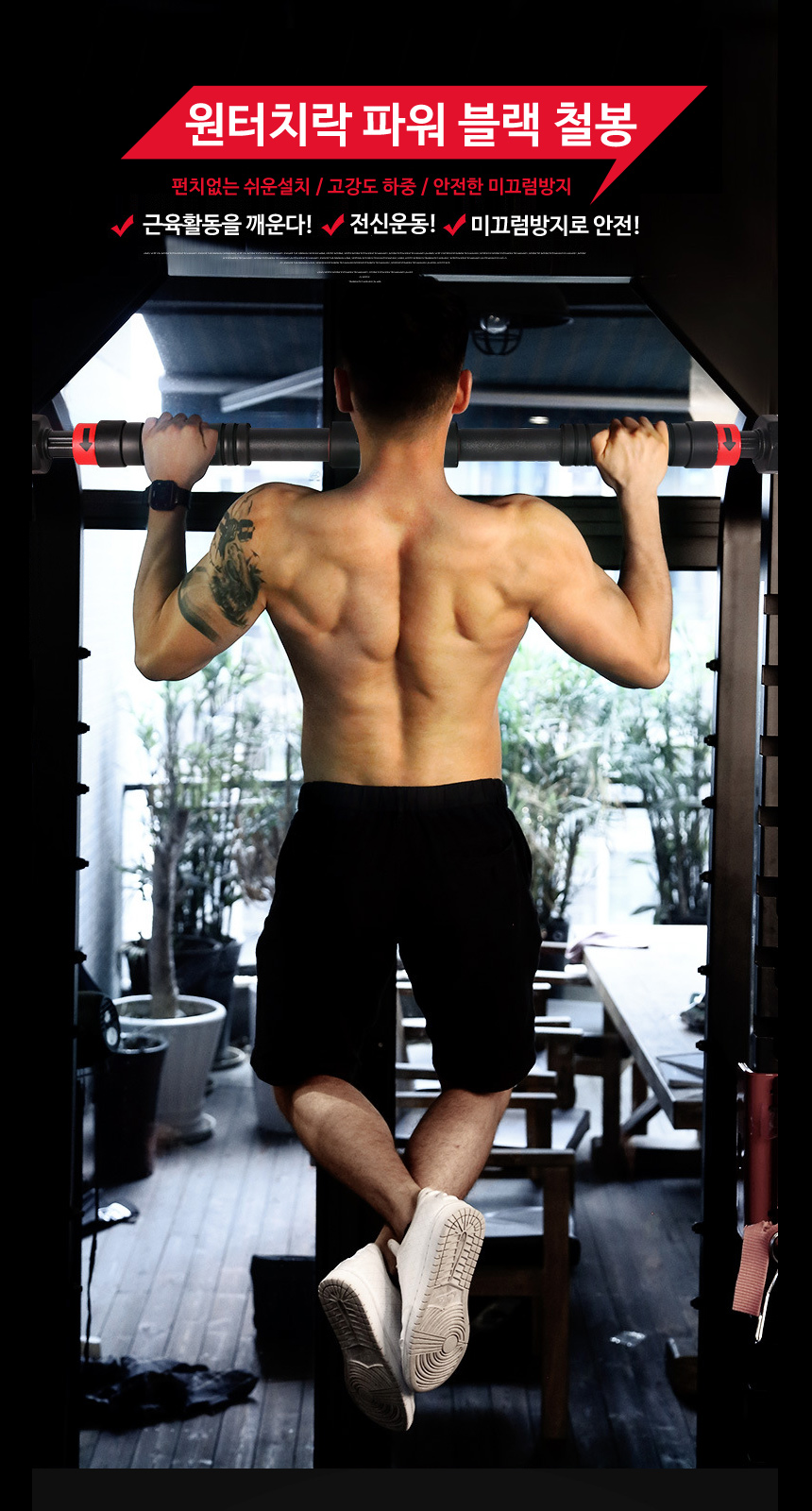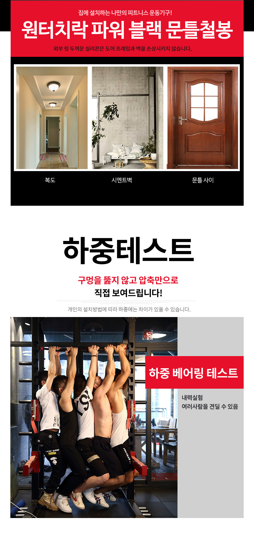문틀철봉 실내철봉턱걸이봉 원터치락 파워블랙 SB-FB100 이미지/