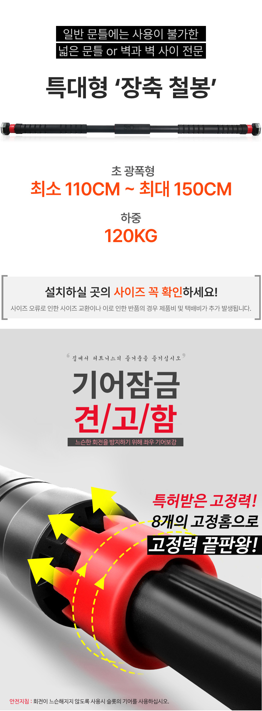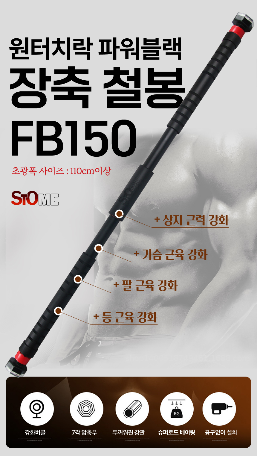 문틀철봉 실내철봉턱걸이봉 원터치락 파워블랙 SB-FB100