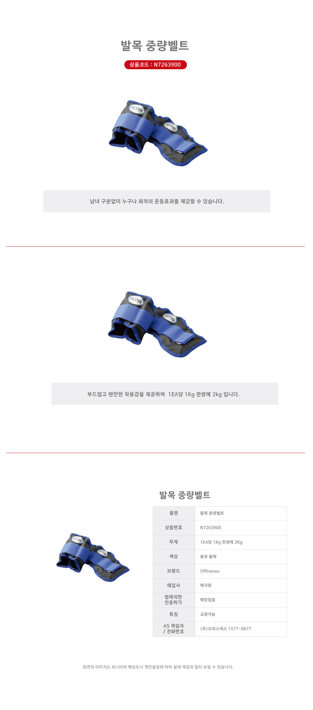 발목중량벨트(2개세트) 1Kg 이미지/